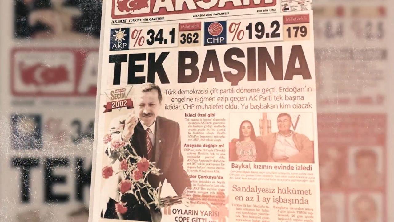 AK Parti’nin iktidara gelişi bölümünde ekrana gelen Erdoğan’ın sesi: